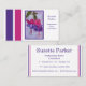 Gorgeous Professional Event Consultant Business Card featuring a Gorgeous Hot Pink Purple Fuchsia Flower with modern panels to compliment the colours of the flowers. This design is also perfect for Florist, Wedding Coordinator, SPA Salon Store, and more. Fuchsia flowers have been originally watercolor painted by the designer from her dog's painted paws. You can contact me thru my website WWW.FANCIFULWATERCOLORS.CA for further matching products