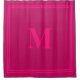 Hot Pink Raspberry Red Monogram Stripe Custom Name Shower Curtain