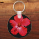 Hot Pink Red Hibiscus flower on Black Key Ring