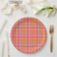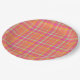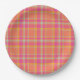 Hot Pink Retro Plaid with Orange and Blue Round Pi Paper Plate