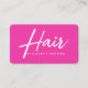 This retro-inspired business card features the word "Hair" in an elegant script font against a hot pink background. Perfect for hairstylists or salons. You can change the text or background to whatever colour you wish.