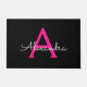 Black and Hot Pink Simple Script Monogram Name and Initial House Doormat. This makes the perfect sweet 16 birthday, wedding, bridal shower, anniversary, baby shower or bachelorette party gift for someone that loves glam luxury and chic styles.