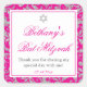 Hot Pink Silver Glitter Swirl Damask Bat Mitzvah Square Sticker