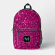Hot pink sparkles faux glitter Custom black Monogram Printed Backpack. Accessory with Hot dark pink shiny sparkles glitters faux sparkle. Fashionable glamour for her. We use photos of sparkles.