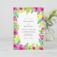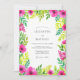 This design showcases vibrant hot pink anemones and lush watercolor greenery in a lively arrangement. A bright palette of magenta and lime green creates a cheerful atmosphere perfect for a seasonal theme. Artistic watercolor leaves and delicate petals provide a fresh, botanical aesthetic.