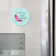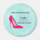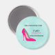 Busness orientated magnet with an image of a hot pink stiletto shoe. Set on a mint green watercolor background. Chic and glamourous. Personalise with your name, website and title, or other text you wish to use.