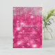 Elegant hot pink Quinceañera 15th birthday party invitation for girls with silver string lights and sparkling bokeh with glittery party lights.