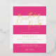 This design features a hot pink stripe design with a real gold foil heading. The script heading is an image that cannot be edited. All of the other text is fully editable. For more advanced customisation of this design, simply select the "Customise It" button above.