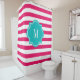 Hot Pink Stripes with Teal Monogram Shower Curtain