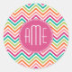 Hot Pink Teal Orange Chevrons Custom Monogram Classic Round Sticker