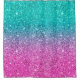 Hot-pink to turquoise faux glitter ombre shower curtain