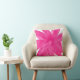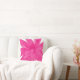 Pillow printed with original watercolor flower painting in hot fuchsia pink on white background.