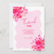 Our baby shower thank you card features hand painted bold hot pink, red floral watercolor bouquet with peonies and roses, with a modern brush script font on a wavy squiggly frame. All the colours are editable. Perfect spring summer botanical baby shower