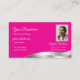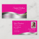 Hot Pink Wavy Silver Decor with Photo Classy Business Card