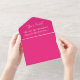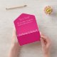 Modern hot pink wedding invitation with a bold colour block design—perfect for summer or non-traditional celebrations.