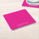 Hot pink paper coaster. Personalised names. Wedding bar accessory. White text.