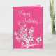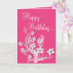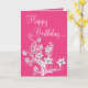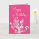 Hot Pink White & Black Floral Happy Birthday Card