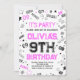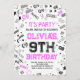 Hot Pink White Boy Number Nine Birthday Party Invitation