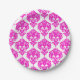 Hot Pink & White Damask Chic Elegant Party Paper Plate
