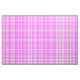Stylish geometric fabric features a hot pink and white gingham block pattern. Dark pink, pink, and white squares form a bold, buffalo plaid.