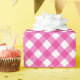 This wrapping paper features hot pink and white gingham plaid pattern.