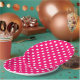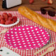 These paper plates features white polka dots on a hot pink background.