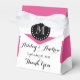 Hot Pink White Stripes Pattern, Black Monogram Favour Box
