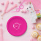 Another bold formal wedding plate by JessicaAmber - message me about custom orders! These cute paper plates feature a hot pink and white colour scheme. It shows a couple's monogram in a flourished script font. You can change the letters and the dividing symbol. Browse my collection for matching envelopes and stationery. ⚠ The heading font is Singapore. To use special characters, copy them from https://www.zazzle.com/singapore_font_ligatures_poster-228436244039070899 ⚠ ••• Created 10 Nov 2023 ••• For more wedding suites, visit my store zazzle.com/DriftwoodAndDreams