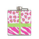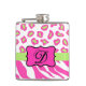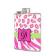 Hot Pink White Zebra Leopard Skin Monogram Initial Hip Flask