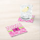 Hot Pink White Zebra Leopard Skin Monogram Initial Square Paper Coaster