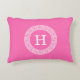Hot Pink Wht Greek Key Rnd Frame Initial Monogram Decorative Cushion
