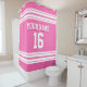 Hot Pink with White Stripes Sports Jersey Shower Curtain