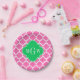 Hot Pink Wt Moroccan #5 Emerald 3 Initial Monogram Paper Plate