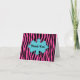 A chic and glam zebra striped pattern in girly hot pink with a fancy blue banner on it. Shown on a thank you note card. All text is customisable.