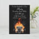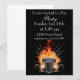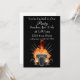 Hot Rod party fire invite has. A vintage car engulfed in fiery flames, with radiant beams of light emanating from behind it. The car is positioned centrally, with the flames rising majestically from its top, enveloping its entirety. The background is pitch black, which accentuates the brightness and intensity of the flames and the radiant beams. The wheels of the car are prominently displayed at the bottom, and the front grille and headlights are clearly visible.