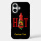 HOT letters with the O made with a chily pepper sauce bottle. Custom background colour. Custom text.
