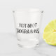 This custom shot glass features "hot shot programmer" in decorative serif typography. Makes a funny gift for a talented computer programmer, coder, or developer, and with editable text, you can customise it.