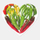 Photo of various sorts of red, yellow and green hot chilli peppers forming a heart, for Mexican food lover, homegrown vegetable gardener, organic food producer, homemade salsa, dip or spread etc.