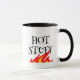 Hot Stuff coffee mug with red fire flames. Cute cup for friends and family. Fun for home and office.