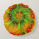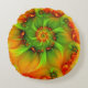 Hot Summer Green Orange Abstract Colourful Fractal Round Cushion
