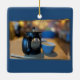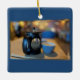 at christmass as a hanging decration for the chritmass tree.. its white porcline or cramic but very well made with added photo on one side.. also has a lovley red bag to keep it in.. execlent printed text in bold and black stands out well aganst the blue background of the photo.
