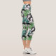 A Chic And Fashionable Capri Legging Done In Black And Green Tropical Leaves For Running Or Yoga