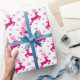 Hot White & Pink Winter Christmas Reindeer Wrapping Paper