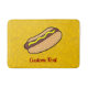Cartoon illustration of hotdog. Junk food outline icons yellow pattern background. Custom text.