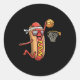 Hotdog In Bread Roll Playing Basketball Sports Pla Classic Round Sticker