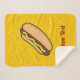 Cartoon illustration of hotdog. Junk food outline icons yellow pattern background. Custom text.