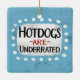 "Hotdogs Are Underrated" is a fun and chunky text design featuring a white accent shape surrounded by cute white polka dots.