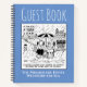 Guest book for a hotel, motel, bed and breakfast, inn, or self-catering accommodation. Notebook for hotel guests to leave their comments. Funny cartoon shows holidaymakers on the beach.