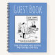 Guest book for a hotel, motel, bed and breakfast, inn, or self-catering accommodation. Notebook for hotel guests to leave their comments. Funny cartoon on receptionist quizzing guests.