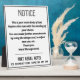 Hotel Reception or Bedroom Notice Plaque. A prominent sign that will welcome your guests or to display any important message. Make it personal by adding your hotel name. Reception plaque for a hotel or restaurant. Includes lines showing hotel name and address, as well as the main message.
